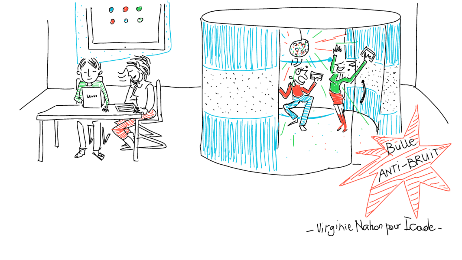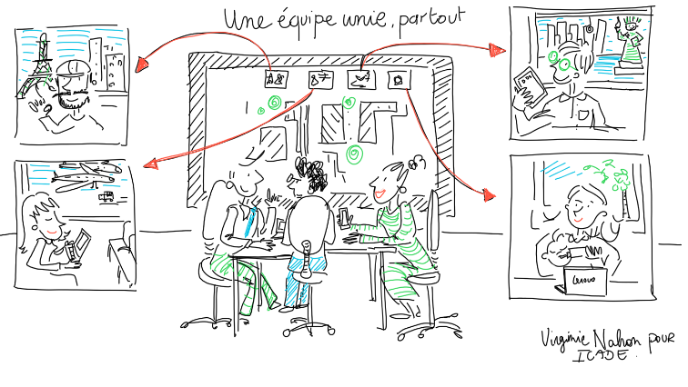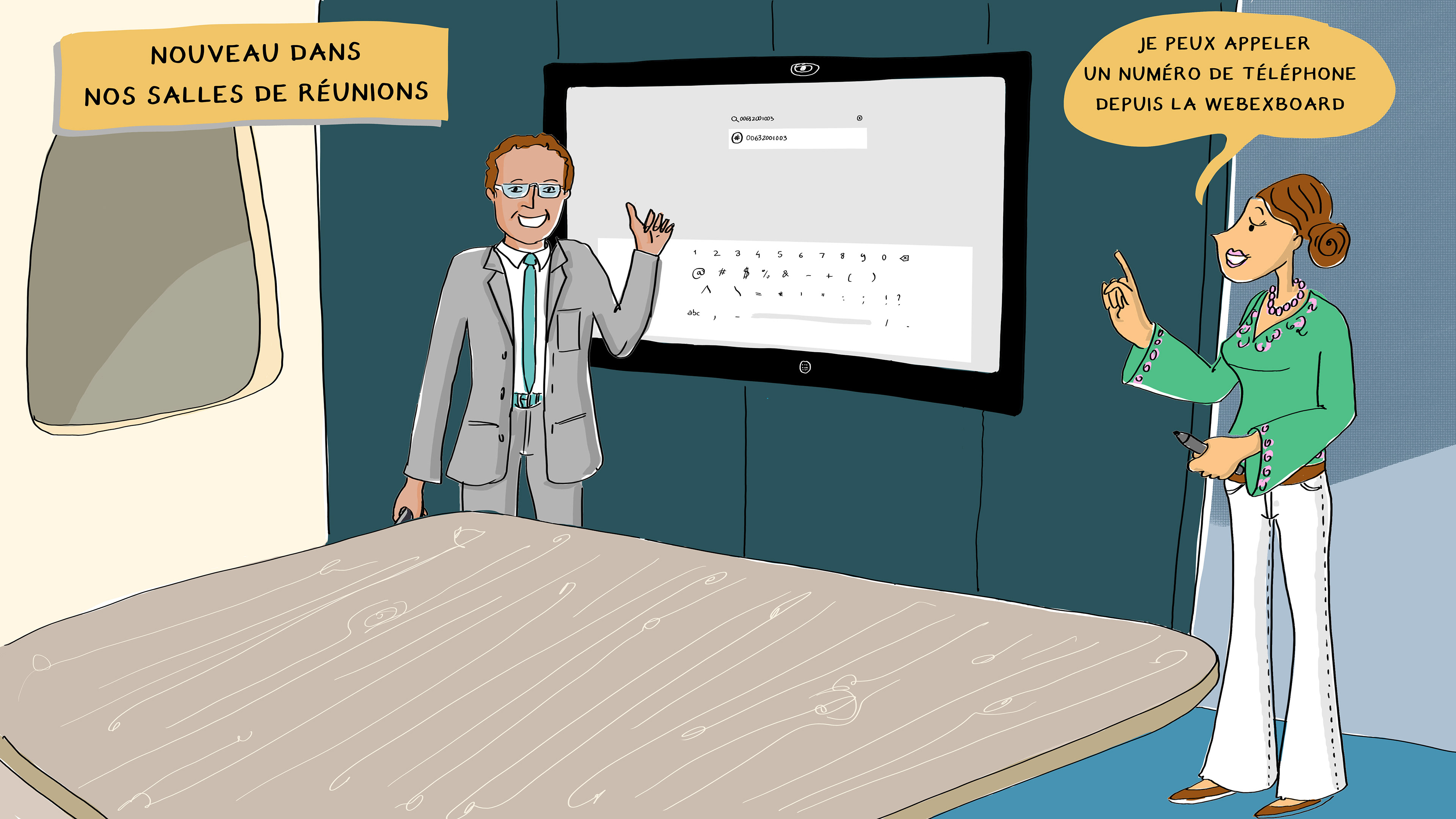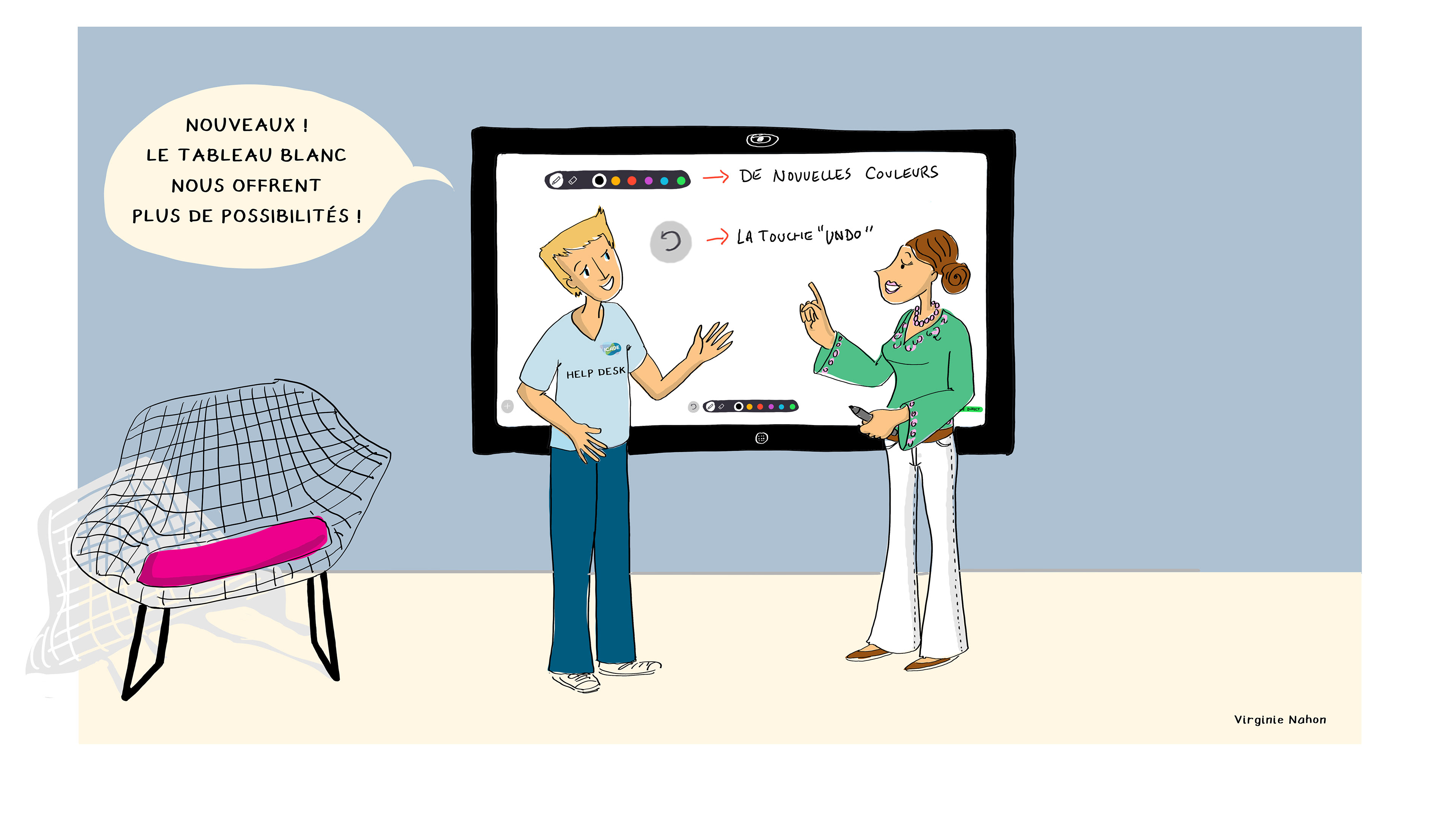 Travail d'illustration pour faciliter l'adoption de nouveaux usages (Cisco Webex board) chez Icade (client d'orange consulting)